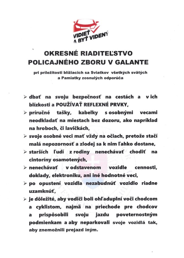 Pri príležitosti blížiacich sa Sviatkov všetkých svätých a Pamiatky zosnulých